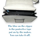 Venus handbag/cross body bag. Silver tone hardware with silver tone studs and faux turquoise cabs. Western themed. Chain and Polyurethane adjustable handle. Lined. One interior zippered pocket and two sections.