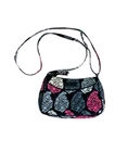 Vera Bradley quilted crossbody Black pink grey white print Approximate measurement 8” width, 6” height, 2” depth, 55” strap at longest Adjustable strap Zip closure, pocket on outside Good condition