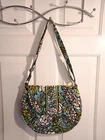 This beautiful Vera Bradley crossbody bag is perfect for any fashion-forward woman. The exterior is a stunning white color with blue and green floral patterns that add a pop of color to any outfit. The bag features a white handle/strap color and white hardware color, making it a versatile accessory for any occasion. The interior is lined with a matching white color, providing ample space for all your essentials. With its stylish design and functional features, this crossbody bag is a must-have for any woman on the go.