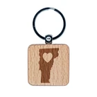 Vermont State with Heart Engraved Wood Square Keychain Tag Charm