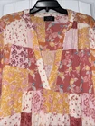 This Vici peasant blouse features a unique patchwork design that is perfect for any occasion. The blouse has a relaxed fit and a V-neckline, with short sleeves and a pullover closure. The ivory color and casual sleeve type make it ideal for summer, fall, and spring, while the rayon material ensures that it is comfortable to wear. This blouse is perfect for travel, parties, or casual wear. It is available in XL size and is made in China. The babydoll swing style and peasant theme add a touch of elegance to the blouse, making it a great addition to any wardrobe.