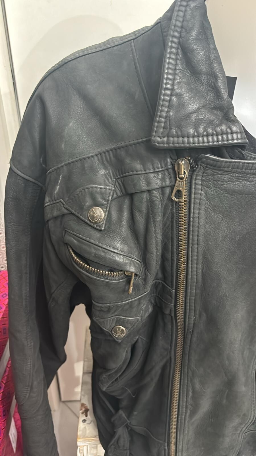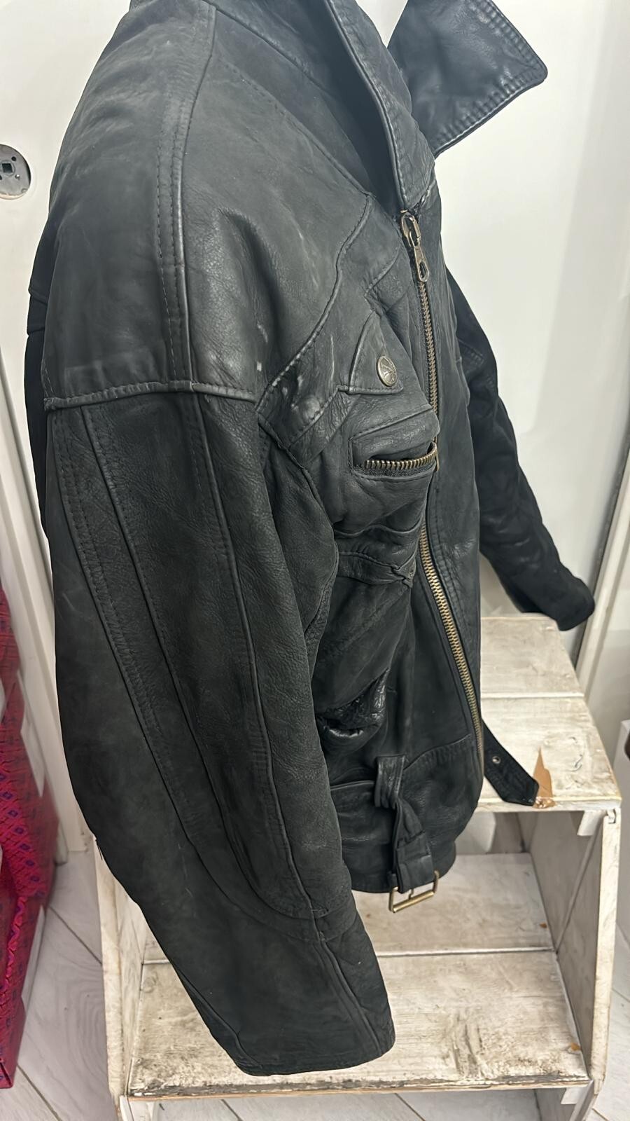 Victoria Station Used Leather Jacket Men Size XL Black LLD426