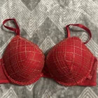 Victoria’s Secret Bra 34C Holiday Lined Demi Red Plaid Gold Underwire Push Up