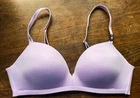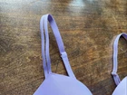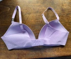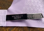 this is a beautiful Victoria Secrets bra in size 36C. It is pale lavender and has the original tag on the strap. A beautiful gold V with rhinestones in the center. It does have pinch marks along the bottom from a hanger. See photos.