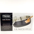 Due to variations from Picture to in-person our product's colors may vary slightly when seen in person. Viking Cast Black 4-Qt Saute Pan 3-Ply Stainless Steel, Copper Handle New For use on all cooktops, including induction; Dimensions: 4-qt, 9.5" Diameter, Height without lid 3" height with Lid 5" Vented glass lids to see progress and help prevent boil overs Compatible with gas, electric, ceramic and induction cooktops Dishwasher safe, handwashing recommended Signature Viking stay-cool handle Dishwasher safe Shipping We ship everyday Monday – Friday. Free shipping within the US! Returns We hope you will love your purchase, however if you need to return it, we have a 30-day return policy. Returned item has to be in its original condition. Buyer is responsible for return shipping costs. After receiving the return, we will make a replacement depends on our available stock, if not available, a refund will be issued. 100% money refund! Feedback Feedback is very important for everyone participating in the eBay community. Please kindly leave us positive feedback once you get the package and you’re satisfied, and we will always leave you the same. Please do not leave negative or neutral feedback, if there is any problem with your product, please contact us first, I am sure everything could be solved by communication. We will offer you a satisfying result. We are serious seller, and we always respond to our customers. Thank you!