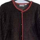 22" armpit to armpit 18" shoulder to shoulder 18" armpit to hem 18" armpit to cuff 29" shoulder to hem vintage Villager (A Liz Claiborne Company in the 1990s) top / shacket comfortable cotton material black button-up features red trim detailing long sleeves crew neckline casual sleeve type and regular fit easy care ** all items stored in a smoke-free & pet free home