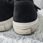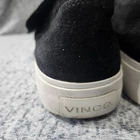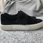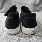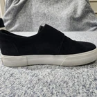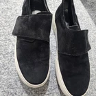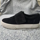 Step into minimalist luxury with these Vince. Velcro slip on sneakers. Crafted from soft black suede with a sleek wide velcro strap, the sneakers offer both comfort and sophistication. The thick white platform sole adds a modern touch and makes them perfect for casual or elevated everyday wear.