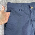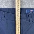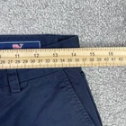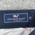 Handmade: No Rise: Low (8-10 in) Occasion: Casual, Travel Vintage: No Material: Cotton, Spandex Closure: Zip Size: 28 Waist Size: 28 in Personalize: No Front Type: Flat Front Country/Region of Manufacture: India Garment Care: Machine Washable Fit: Regular Size Type: Regular Color: Blue Brand: Vineyard Vines Features: Easy Care, Pockets, Stretch Accents: Logo Pocket Type: Slash Pocket Style: Chino Pattern: Solid Inseam: 8.5 in Department: Men Season: Fall, Spring, Summer Theme: Beach, Nautical, Outdoor, Preppy Fabric Type: Canvas