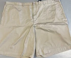 Elevate your summer wardrobe with these stylish and comfortable Vineyard Vines khaki shorts in size 54B. The breathable spandex and cotton blend material, paired with a flat front and stretchy fit, make these shorts perfect for any casual occasion. With a solid pattern and beige color, these chino-style shorts feature pockets and a generous 11 inch inseam. Designed for big and tall men, they are the perfect addition to any warm weather outfit. Don't miss out on these new with tags, high-quality shorts from a top brand.
