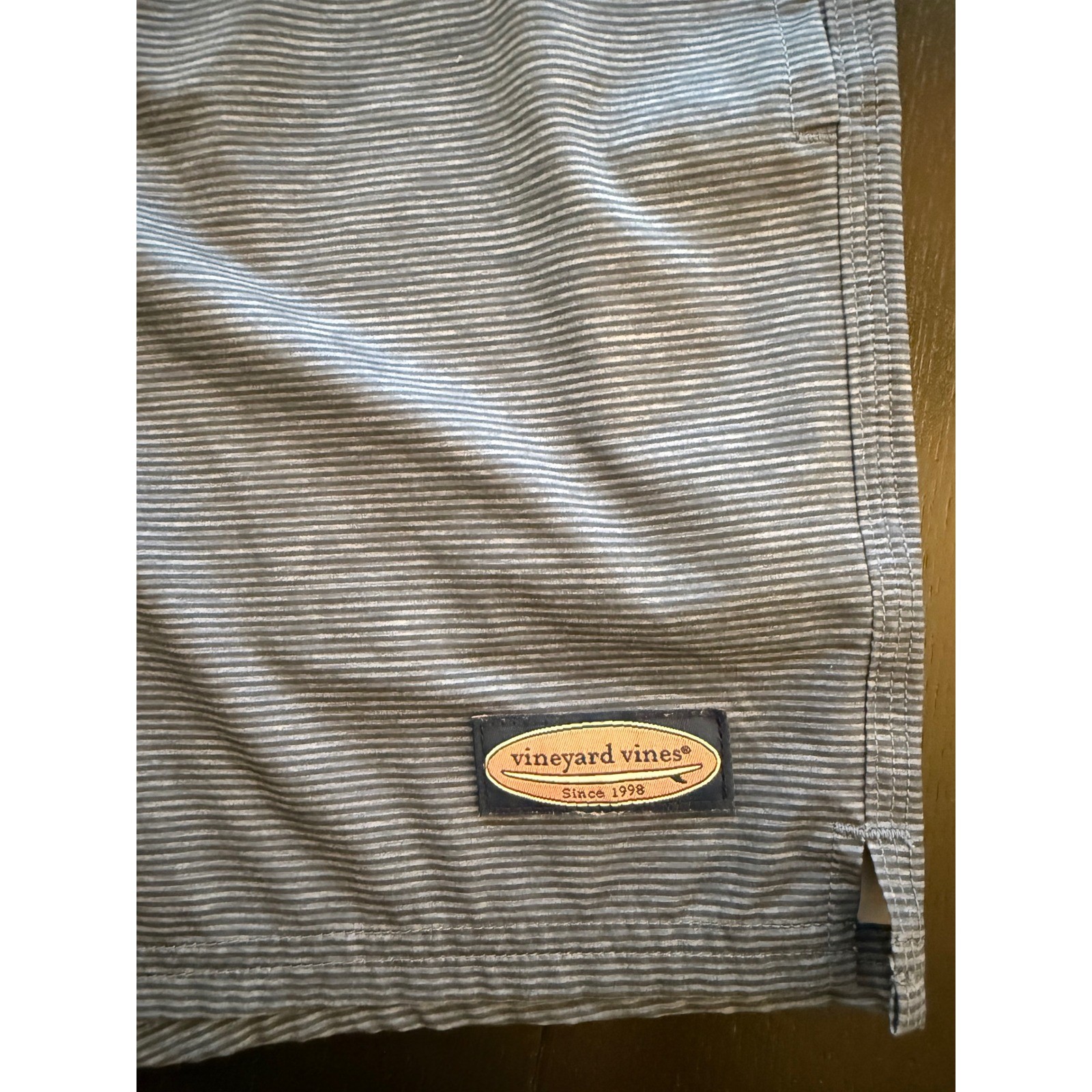 Vineyard Vines Swim Trunk Mens M Blue Striped Board Shorts Beach Resortwear Condition: Good: gently used; mesh liner previously removed; light wear consistent with use. Additional signs of normal wear may be present. Please see all photos. Size: medium - 90% polyester; 10% spandex (Measurements in photos) Ships FAST & AFFORDABLE - next business day. - All Offers welcome - SKU:3762