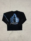 Dragonball Z Trunks Longsleeve T-Shirt. This rare anime shirt is a must-have for fans of the Dragonball Z series. The shirt features the character Trunks and is made of cotton. It is machine washable and has a regular fit. The shirt is black and blue in color and is a vintage piece from the year 2000-2009. Perfect for all seasons, this shirt is great for both casual and formal occasions. Get your hands on this one-of-a-kind Dragonball Z Trunks Longsleeve T-Shirt today!