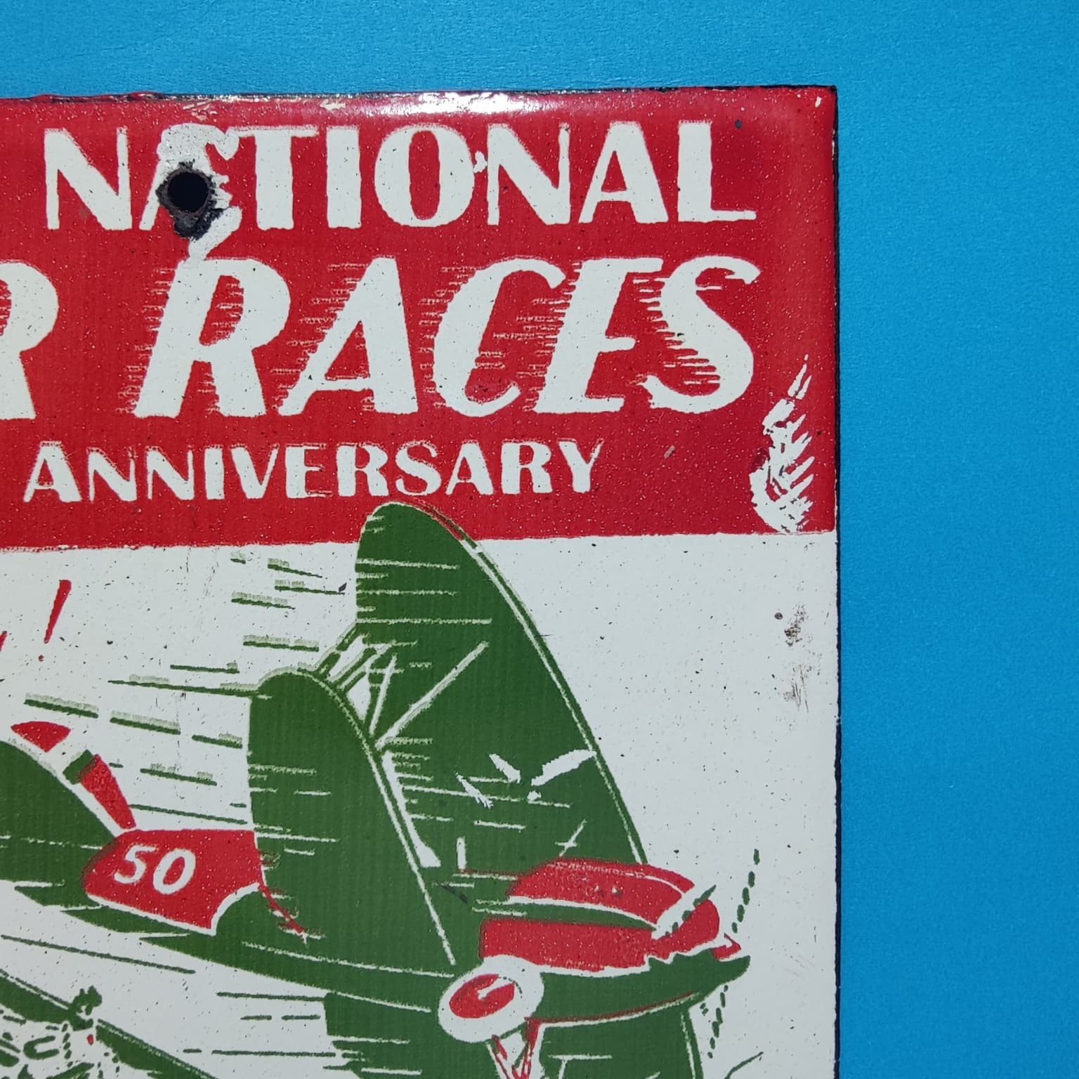 The Vintage 1930 AIR RACES Reynolds Chicago Porcelain Enamel Metal sign measures 7" x 5" inches and originates from the United States. This collectible aviation piece showcases a piece of history from the era of air racing in the 1930s, featuring the iconic AIR RACES design by Reynolds & Co. of Chicago. The porcelain enamel finish adds a touch of nostalgia and authenticity to this vintage sign, making it a desirable piece for aviation and transportation enthusiasts alike. * Kindly take a close look at all photos - they show the exact vintage sign you'll receive. What you see is truly what you get. * Carefully packed to protect the signs condition and shipped securely with USPS Ground Advantage