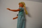 Vintage 1967 Malibu Skipper doll Barbie's sister, with a Skipper Quick Curl blue dress, she has twist n turn body and bendable legs. Please see pictures provided.