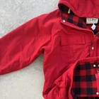 Vintage 80s jacket by LL Bean in their Baxter State Parka style. Red and black plaid checkered wool blend fleece lining, zippered front with snap buttons. Hoodie with drawstring and multiple chunky pockets, nylon outer shell / rain resistant. Tag is hanging on by a thread, made in USA Tagged size men’s Medium Pit to pit: 23.5” Shoulder to bottom hem: 30” Shoulder to sleeve hem: 29.5” Good overall condition, multiple areas of dark staining and wear (hood, sleeve ends, sleeves). Please see pics- no holes noted. (H)