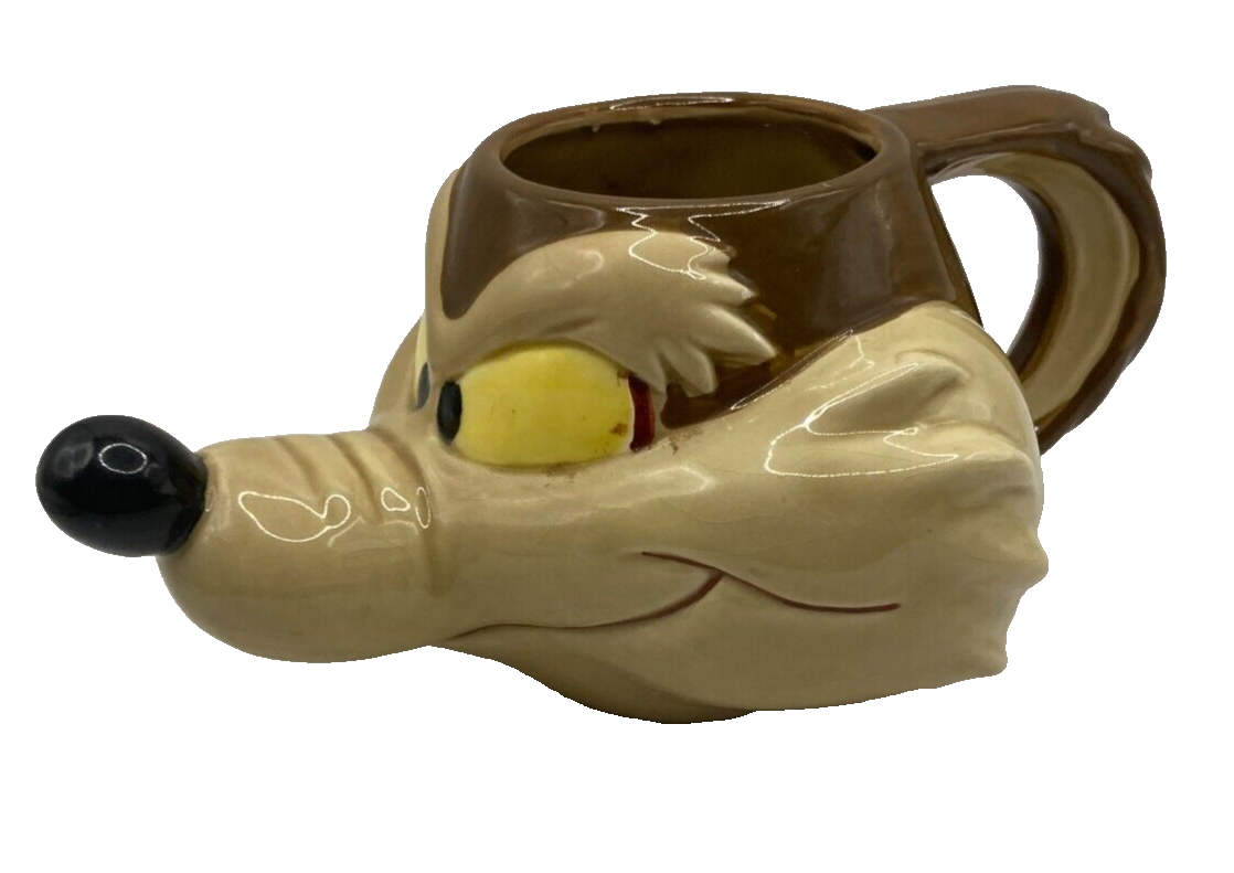 WILD COYOTE Warner Bros Looney Tunes 1991 VINTAGE Collectable Mug Cup Length 20cms approx. Diameter of cup 6 cms approx. VGC