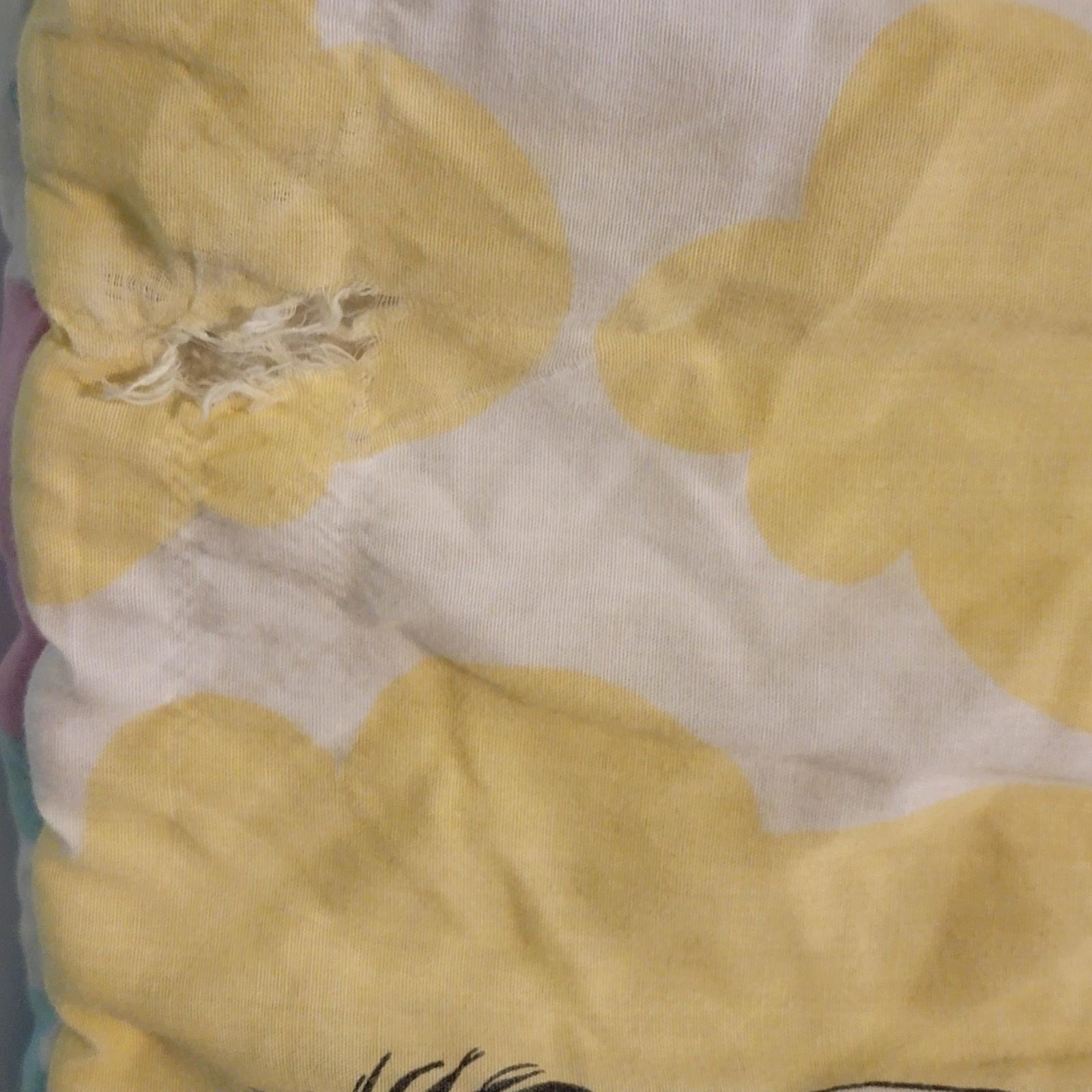 This vintage 1995 Winnie the Pooh crib comforter baby blanket features beloved characters such as Eeyore, Piglet, and Tigger from the Winnie the Pooh & Friends franchise. Made of a soft cotton blend material, this multicolor blanket measures 30” x 40” and is perfect for both baby boys and girls. With easy-care features, this unisex crib blanket brings a touch of nostalgia and charm to any nursery. *There is a small tear on the left in the yellow, you can see a close up in the pictures*
