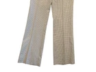 This vintage pair of Levi's Panatela pants from the 1970s features a beige gingham pattern with a bootcut and flared style, making them a unique addition to any wardrobe. The pants are made of polyester and rayon fabric, with a pleated front and a classic fit, perfect for a retro USA or hippie-themed look. With a zipper closure and pockets, these pants are ideal for various occasions from casual to formal, making them versatile and stylish for any event. Measurements: Waist: 16” Rise: 8” Outseam length: 44” Inseam length: 34” Leg opening: 10”