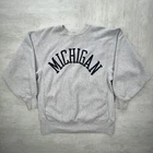 vintage 80s University of Michigan Wolverines grey blue champion reverse weave cool crazy graphic crewneck sweatshirt NCAA college sportswear streetwear retro boho Size: XL Pit to pit: 22 Length: 29