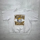 vintage 80s University of Michigan Wolverines white yellow cool crazy graphic football cutoff sleeves crewneck sweatshirt sportswear streetwear retro boho Size: XL Pit to pit: 24 Length: 26