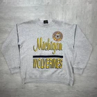 vintage 80s University of Michigan Wolverines white yellow cool crazy graphic crewneck sweatshirt sportswear streetwear retro boho Size: L Pit to pit: 23 Length: 27