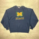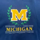 vintage 80s University of Michigan Wolverines embroidered navy yellow cool crazy graphic crewneck sweatshirt sportswear streetwear retro boho Size: L Pit to pit: 21 Length: 26