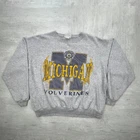 vintage 80s University of Michigan Wolverines Grey navy yellow cool crazy graphic crewneck sweatshirt sportswear streetwear retro boho Size: XL Pit to pit: 24 Length: 24