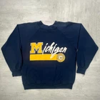 vintage 80s University of Michigan Wolverines navy yellow cool crazy graphic sweatshirt crewneck NCAA college sportswear streetwear retro boho Size: M Pit to pit: 20 Length: 24