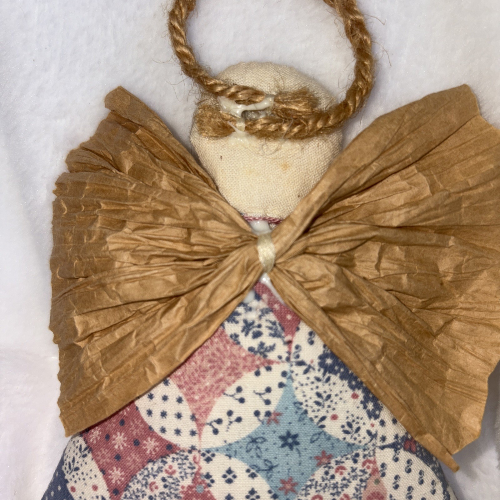 This vintage 90s handmade angel floral pattern stuffed quilted Christmas ornament is a unique and charming addition to your holiday decor. The multicolor quilted angel figurine, measuring 6 inches in height and 4 inches in width, features a floral pattern and a hanging feature, making it easy to display on your Christmas tree. Its medium size and angel theme add a touch of nostalgia and whimsy to your festive celebrations. Made with cloth material in 1991, this one-of-a-kind ornament captures the essence of Christmas past with its traditional design and handmade craftsmanship.