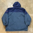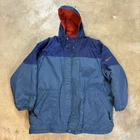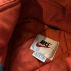 Vtg Nike Hooded Puffer Jacket two tone split colorway puffer full zip, orange swoosh on left sleeve Size: XL Length: 34 in. Pit to Pit: 31 in. Flaws: none