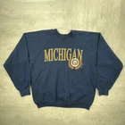 vintage 90s University of Michigan Wolverines navy yellow cool crazy graphic crewneck sweatshirt sportswear streetwear retro boho Size: XL Pit to pit: 24 Length: 26