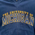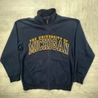 vintage 90s University of Michigan Wolverines navy yellow cool crazy graphic embroidered zip up crewneck sweatshirt sportswear streetwear retro boho Size: M Pit to pit: 22 Length: 27
