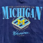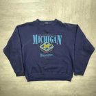 vintage 90s University of Michigan Wolverines navy yellow cool crazy graphic crewneck sweatshirt sportswear streetwear retro boho some fading and small holes pictured Size: XL Pit to pit: 25 Length: 27