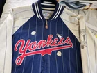 Gorgeous bomber jacket in great condition. Comes with 3 vintage Yankees pins as shown in the pictures!!! The jacket has some fading or some dust marks from storage on the shoulders, tried to shown in the pictures but jot very visible. Jacket is also reversible. Chest 50" Length 26" Many other vintage american baseball items available