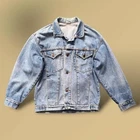 Vintage 90s Wrangler denim trucker jacket | stonewashed | boxy fit | light blue π‘ good/ excellent condition- most wear is around the collar- not much at all - a nicely aged heavyweight cotton denim π‘ made in Hong Kong π‘ 100% cotton denim - the quality of the denim is something you won't find these days π‘ boxy 90s fit, roomy shoulders π labelled size S - oversized 90s vintage- easily fits a boxy-ish M, could fit woman's L so please refer to those measurements: p2p 23" l26", hem/waist 19", arm length 22"
