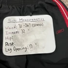 Vintage 90s men's black red Reebok wide leg lined baggy windbreaker track sweatpants w/ zippered ankles Tag Size: L Waist: 31-36" (stretch) Inseam: 32" Leg Opening: 10" Item is in good used condition. Look at photos to see the condition. All, if any, flaws have been pictured. See the last photo for measurements. The waist measurements are measured flat and then multiplied by 2 to get the full measurement around. Please know which measurements fit you prior to purchasing, and don’t just rely on the size tag. Feel free to ask any questions! ***Item is cross posted on several platforms***
