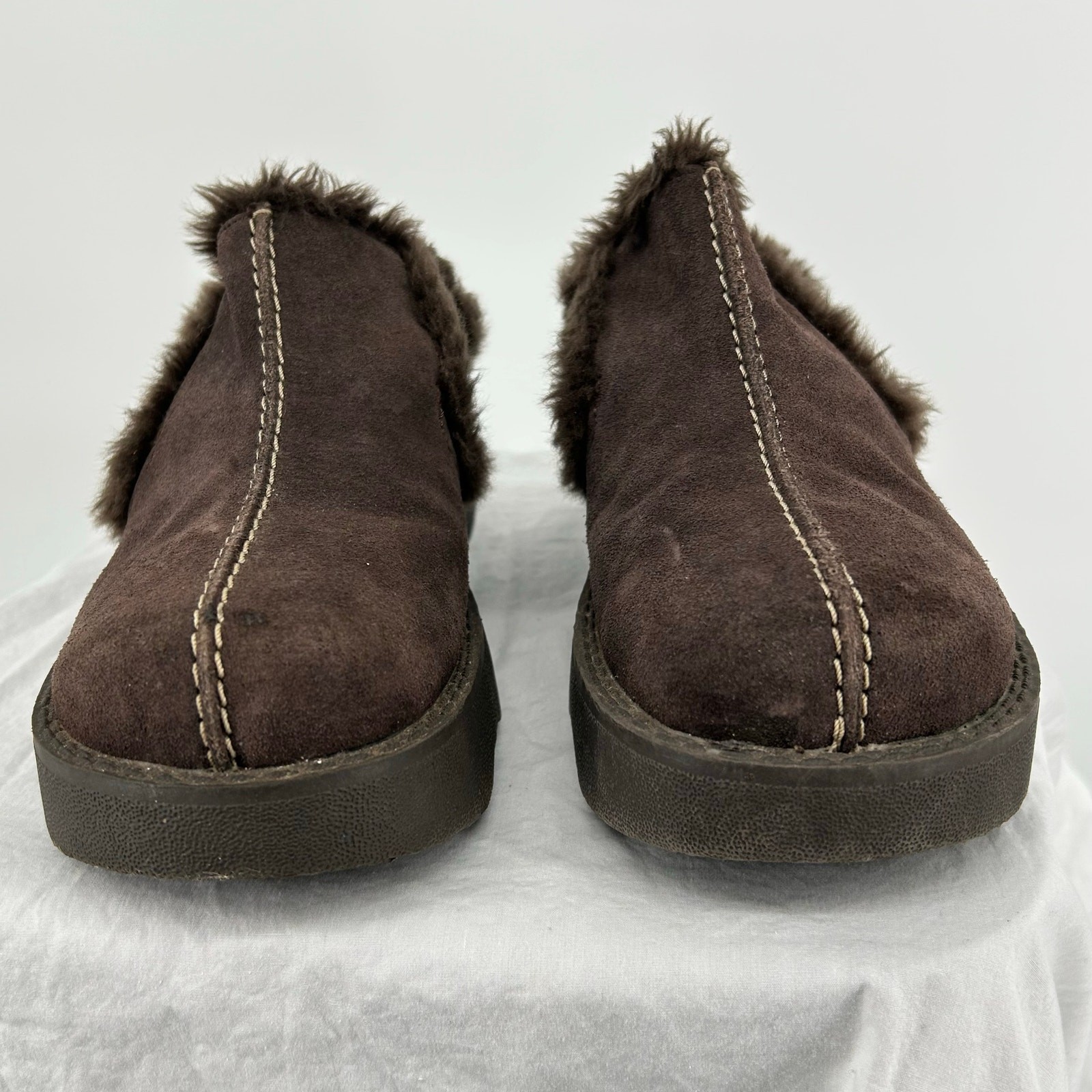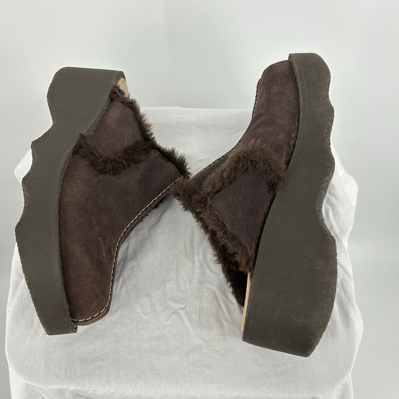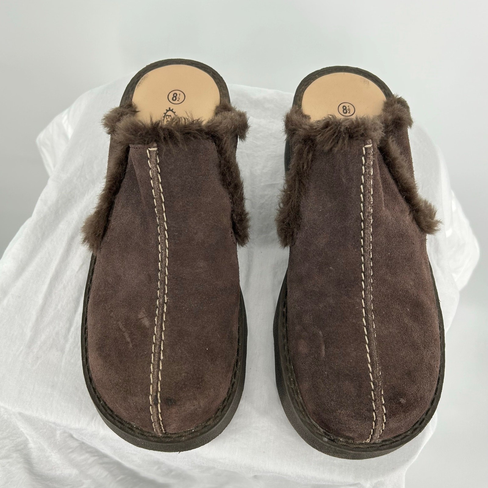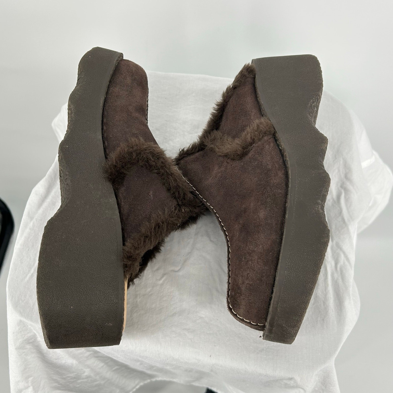 Vintage 90s y2k Women's Brown Suede Leather Upper Faux Fur Lower East Side Chunky Platform Clogs Mules Sz 8.5 -rory gilmore, fall, autumn, ugg style Size: USA Women's 8.5 In good condition. Cross listed on several platforms. Feel free to ask any questions!