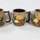 HomeVintage Arnel Mushroom Coffee Mug Set of 3 with D Handles 1981 MCM