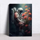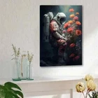 Vintage Astronaut With Flowers Wall Art Canvas Unframed/Framed