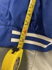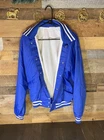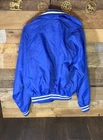 This vintage baseball jacket is a must-have for any Y2K enthusiast. Made in the USA by Sport King, this blue jacket features a solid pattern with a button and snap closure. The jacket is made of softshell fabric with a nylon outer shell material and polyester lining material. It has a size of medium and is designed for men. The jacket is a basic style with accents of buttons and features pockets. The jacket is perfect for casual occasions and is ideal for baseball themes. The Neff Jacket model is a classic design that will never go out of style.