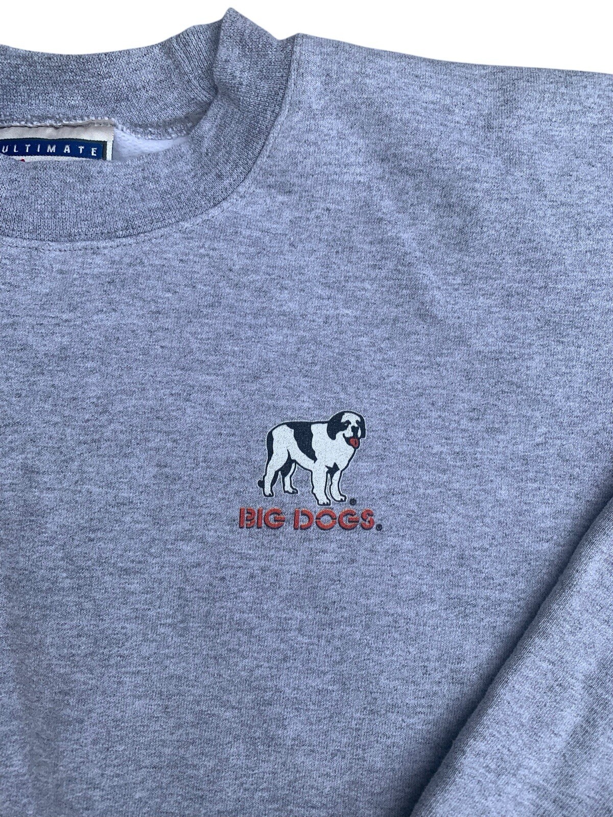 This vintage sweatshirt from Big Dogs features a gray graphic print and is made of heavyweight cotton fabric, making it perfect for all seasons. The pullover closure and solid pattern give it a casual yet stylish look, ideal for gym and training sessions, walking, and running and jogging. The sweatshirt is available in men's size large and is a regular fit. It is perfect for those who love dogs and want to show off their love for their furry friends. The sweatshirt is made in El Salvador and is an excellent addition to any activewear collection. Measurements: Pit to pit length: 24” Top of collar to bottom length: 27” Top of shoulder to cuff length: 22” Shoulder to shoulder length: 22”