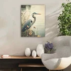 Vintage Blue Heron Wall Art Canvas Unframed/Framed