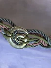 Vintage Statement BOHO Braided Belt Blue, Rose Pink, Silver waist 22-35" mildly elastic The elegantly braided colors , with silver coated center adornment make a UNIQUE Fashion statement. The interwined rope braid is slightly elastic. A silver coated clasp joins the back of the belt. The colors lean toward Pastel and Springtime ~ 30-day return policy for all our items! If the item, you received didn’t prove your expectation – simply send it back! Shipping cost will be refunded only if item not as described.
