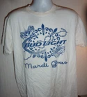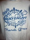 Vintage Bud Light Beer Mardi Gras White T-Shirt Large in good condition, measures 21" armpit to armpit and 26" top to bottom.