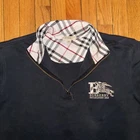 Burberry Brit Sweatshirt Mens L Black Logo Quarter Zip Long Sleeve Pullover