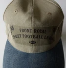 Vintage Strap Back Adjustable Hat with Clip. The hat is canvas hat, blue and tan with Font Royal Midget Football League Logo on front of hat. The hat is in good condition with no major marks, stains, scratches, torn or missing parts. Additional photos upon request. Hat will be shipped in safe and secure packaging.
