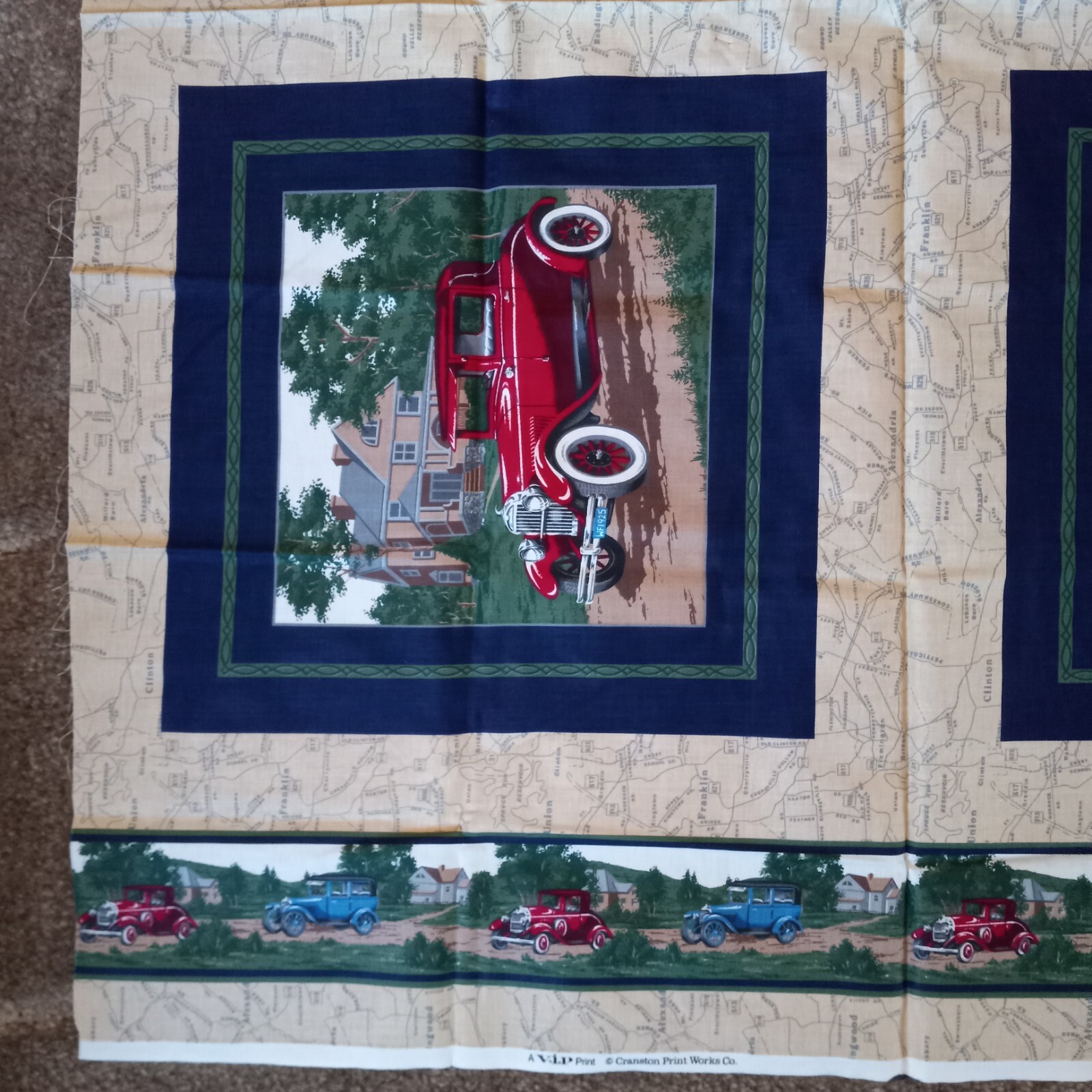 4 Cranston VIP Prints Vintage/Antique CARS Fabric Pillow Panels Quilt. Uncut App. overall measurement is 45"x 35". Fabric I believe is unused. Please see pictures as they form part of description. $4.50 s/h cost. Thank you! We are not experts on everything we sell, but describe them the best that we can. If the picture(s) do not offer enough information to make a sound decision, do not hesitate to email your questions. INTERNATIONAL SHOPPERS: We mail through Ebay's Global Shipping Program only.