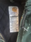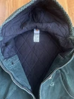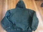 Carhartt Vintage J130 SPC Green Hooded Jacket Large Carhartt vintage j130 hooded jacket in rare green SPC color and size large-regular. Black quilted interior, inner chest pocket, drawstring hood. Obvious signs of distressing (faded, few holes), but all zippers are functional and no hole is too severe to the function of pockets or sleeves, etc. Feel free to message me any questions ;) Sleeve: 23 in Length: 26.5 in Pit to pit: 26 in #carhartt #vintage #y2k #workwear #green