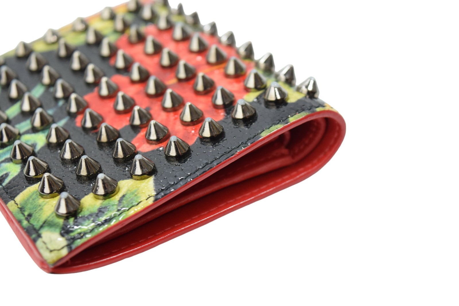 This Christian Louboutin wallet is a stylish and compact accessory with a bold studded design. The Hawaii leather feels luxurious, and the interior is surprisingly spacious with multiple card slots and a coin pocket. While it shows some wear, the unique design and brand prestige make it worth it. Perfect for adding a touch of edgy glam to any outfit!