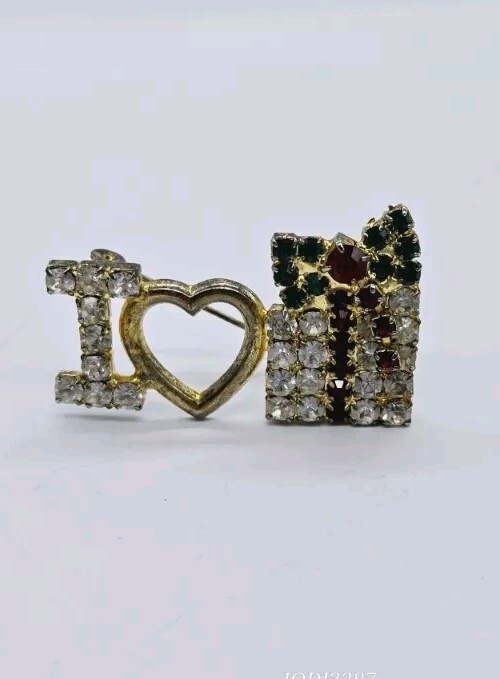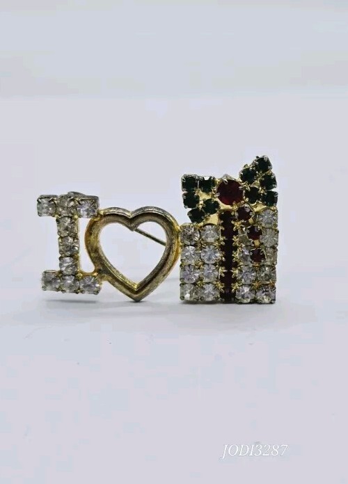 Metal:UnknownBase Metal:UnknownShape:I Love Christmas GiftsType:BroochSigned:NoColor:MulticolorVintage:YesJewelry Department:FashionCustomized:NoMain Stone Shape:RoundOccasion:ChristmasMaterial:Crystal, EnamelAntique:NoMain Stone:CrystalHandmade:NoTheme:ChristmasMain Stone Color:WhitePersonalize:NoItem Length:1.5 inBrand:UnbrandedDepartment:Women