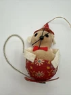 Vintage Christmas Holiday Mouse Felted Plastic Tree Ornament Figure Pre-owned. Some wear on back as shown. See measurements and pictures.